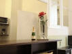 Badezimmer: In diesem Bad befindet sich eine Dusche, ein Handwaschbecken, eine Toilette, ein Fön und eine Waschmaschine. Das Bad hat eine Größe von 5 qm. Der Boden ist gefliest. kombiniertes Wohn-/Schlafzimmer mit offener Küche: In diesem Wohn-/Schlafraum befindet sich ein bequemes Doppelbett mit geteilter Matraze, eine Schlafcouch, ein Esstisch, ein Wohnzimmertisch, ein Kleiderschrank, 3 Stühle, 2 Nachttische, eine Stehlampe und eine Hängelampe. Der Boden ist mit Laminat ausgelegt. Der Raum ist stark abdunkelbar. Bei geöffnetem Fenster ist Straßenlärm geringfügig zu hören. Extras in der Unterkunft: In der Unterkunft stehen zur Verfügung: 1 Radio, 1 Plasma-Fernseher, CD-Spieler, Videoplayer, DVD-Player, Internetzugang (DSL, W-LAN, Wi-Fi) und Zentralheizung.